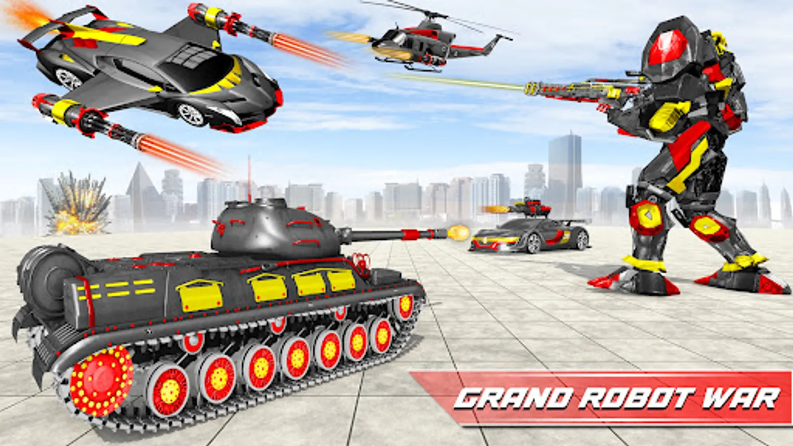 Get ready to play tank robot games and transform robot games into car robot games to fight against gangster robots for rescue the city. In Tank Robot Game and robot wars battle of robot car transform games you will have killed evil robots with super powers to become the champion of the grand super robot war games and car robot flying shooting. In this robot transforming games, best robot game of every level of flying robot games, you will kill different types of evil robots and fight with robot cars who are causing trouble in robot shooting games. In transforming war game, take a tour to this robot transform game and start to play as the commander of superhero robot car transforming to shoot at tank robot car in flying car games and robot transforming games.