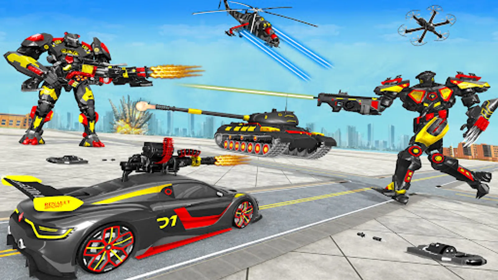 Unleash your expertise in Flying tank robot cars transform robot games in robot war rescue games, use robot shooting skills in flying army robot car transform game. You can enjoy a variety of robot shooting games, car shooting games, tank shooting games, flying police robot rescue mission, super robot shooting in a battle war environment, city war robot rescue mission, city shooting like a commando shooting, army sniper range master shooter in truck robot car games. Drive robot car as robot police car transformation in robot car transforming games to get experienced by robot shooting free tank and car shooting games.