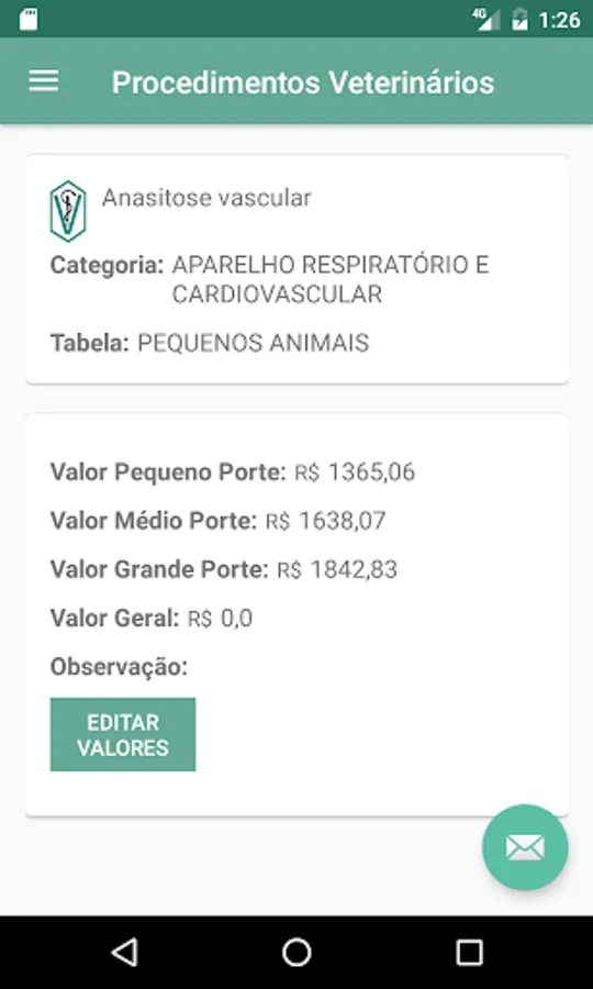 Table of Veterinary Procedures is an application that cannot be missing on the smartphones and tablets of any veterinarian. Effective tool to help the professional to have updated information on the values of the procedures of veterinary medicine.