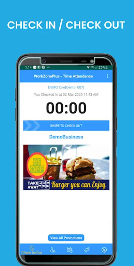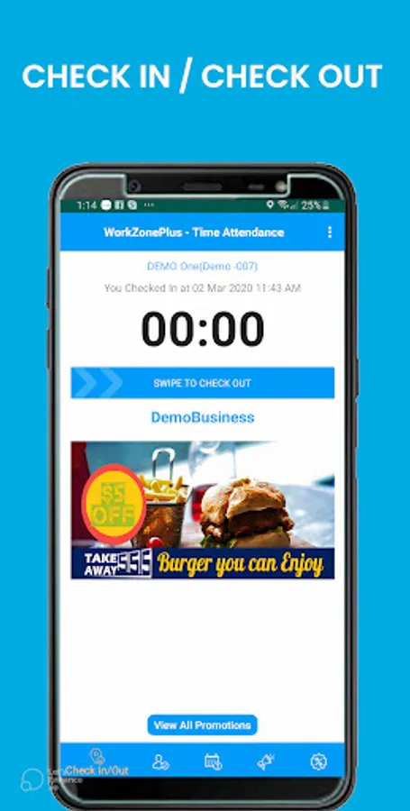 Staff can use our Attendance App to Check in and Check out using their Mobile Phone.