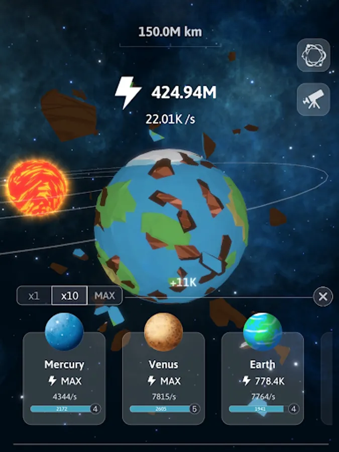 In Idle Galaxy you will get a lot of knowledge about solar system and the universe. Think about how the universe works and understand the mysteries of black hole.