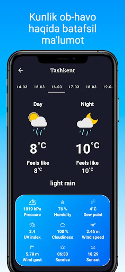 - Ob-havo ning barcha detallarini ko'rishingiz mumkin.