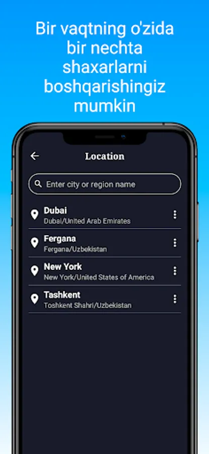 - Bir vaqtning o'zida bir nechta shaxarni qo'shish va ko'rish imkoniyati.