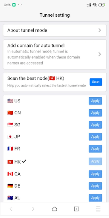 Intelligently enable the tunnel and automatically select the fastest tunnel node.