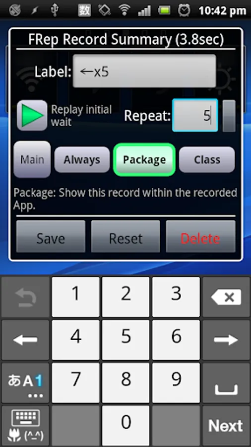 - Record and Replay/Repeat/Edit operations of touchscreen and/or keystroke