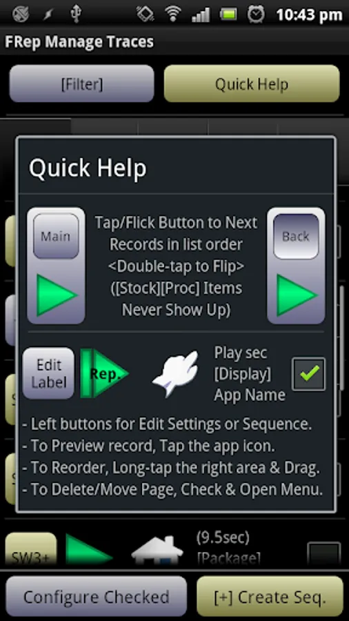 In record/replay, occasional call or App change may cause a problem. To avoid that, FRep is restricted on Phone, Google Play and FRep itself. You can configure restriction for other Apps.