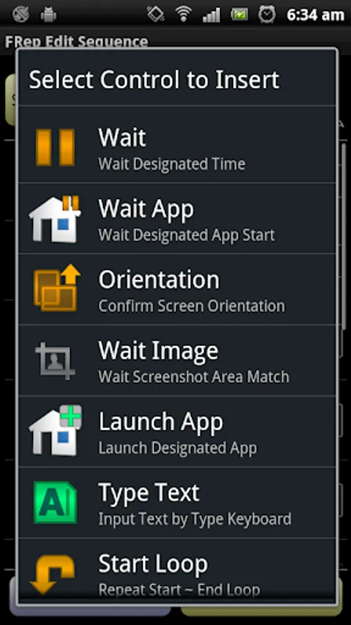 - Take Screenshot control, Vibration notify control and Type Text control as keyboard typing in Edit Sequence.