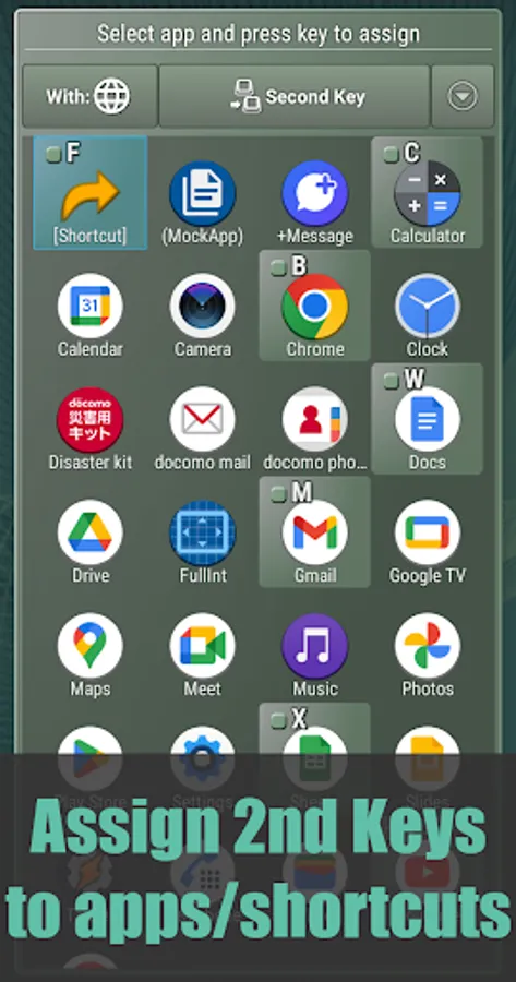 Second Key: register multiple apps and shortcuts for sub launcher palette, which popup when the app-launch Func key pushed.
