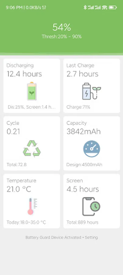 Battery Guard can set high and low thresholds and then alerting the user when the power reaches the threshold, so that the battery maintains a shallow cycle working state.