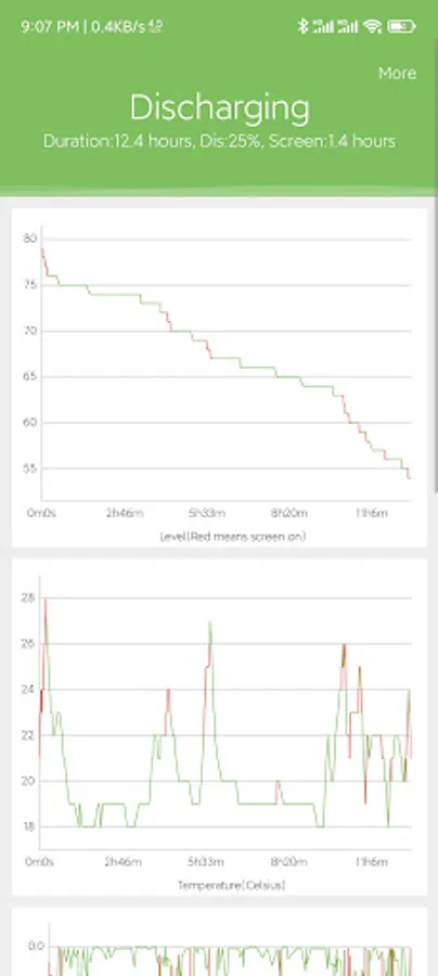 * Record battery temperature and generate daily, weekly and monthly statistical charts.