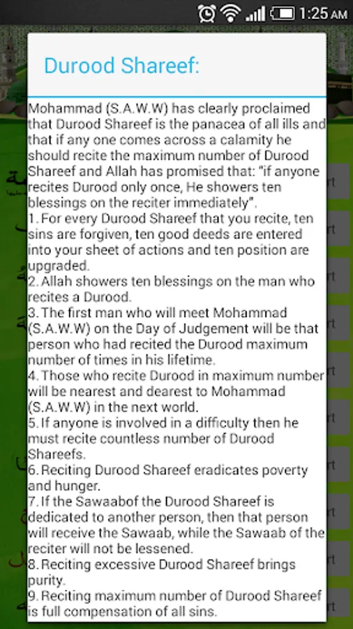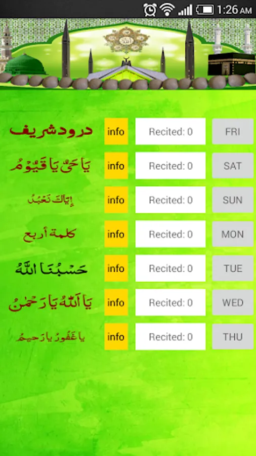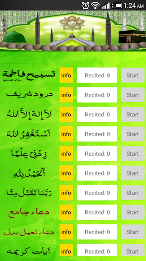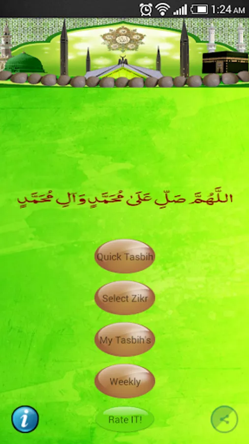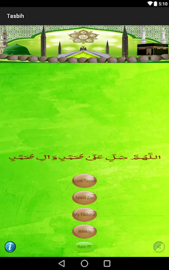 > Every Zikr/Tasbih includes "INFO" button which will show Information/Merits of that Tasbih