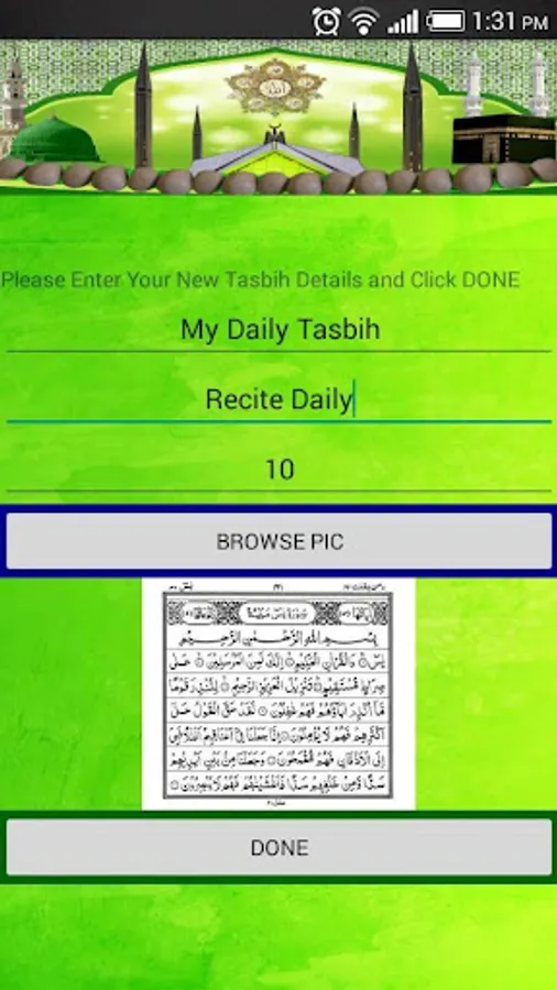 > You can also add "INFO" for you OWN Tasbih in "My Tasbih" Section