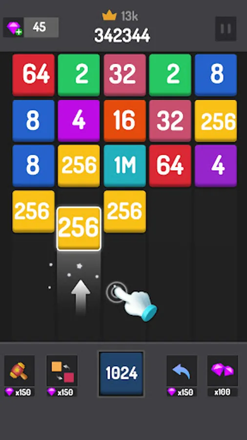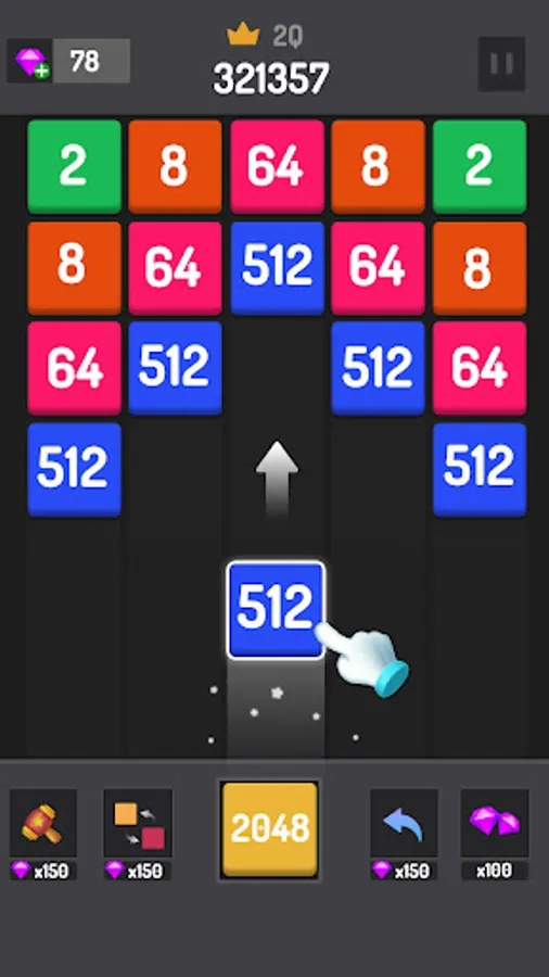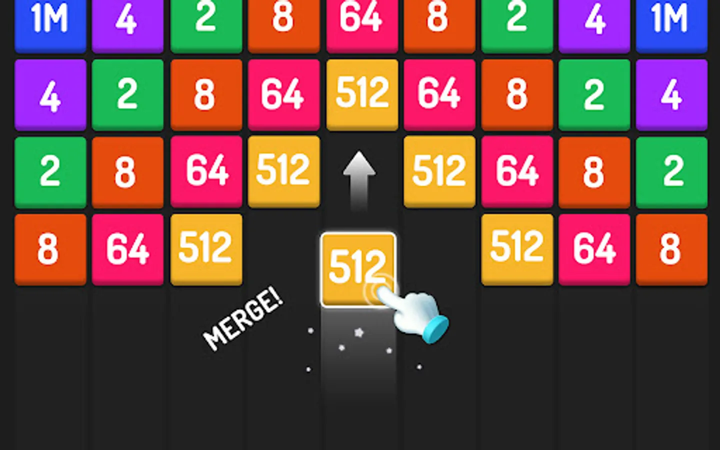 -Tap, shoot and drop the number to merge, get new higher number blocks.