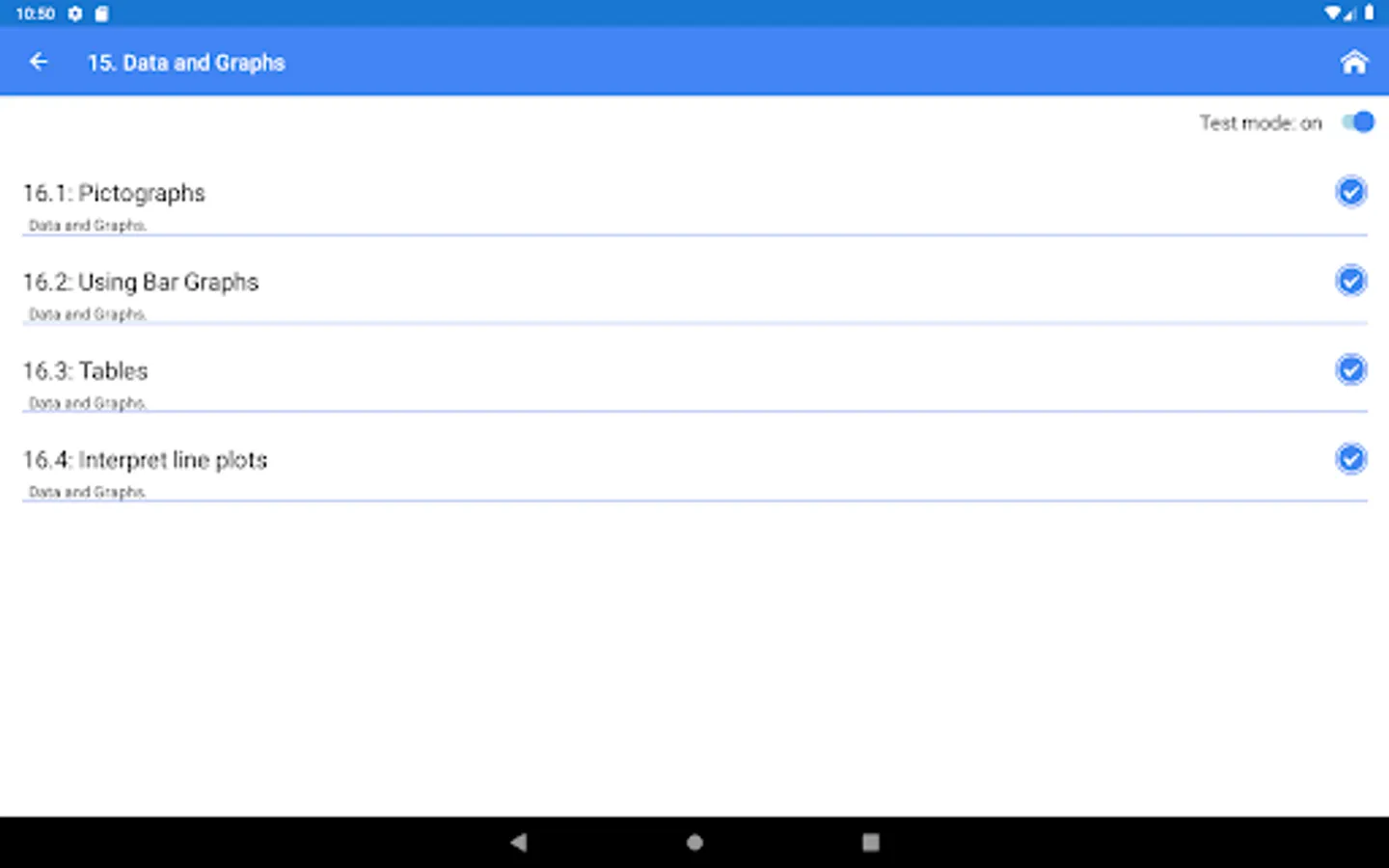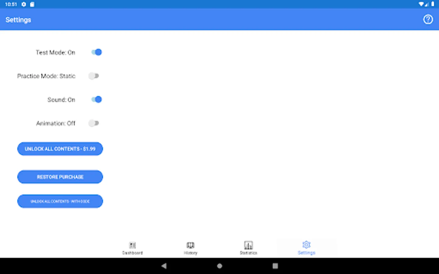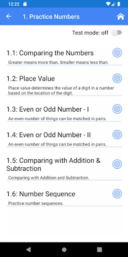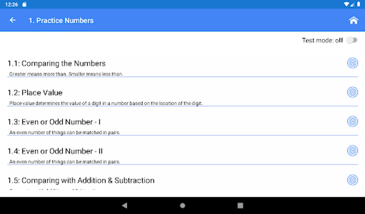 * App Mode: Practice/Test. In practice mode, the student will get the same questions every time unless they change the setting. In test mode, the questions are randomized.
