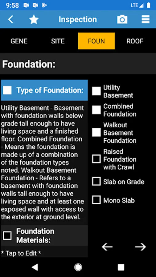 • Capture photos directly into your 3D Mobile Inspector Inspection from the device camera or the gallery. No set limit to the number of photos you may include for any area of a narrative inspection report. Photos in copied fields may be printed neatly together in a row in the final report.