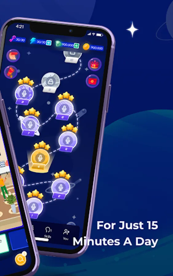 ⭐ Practice every day by playing games to learn English vocabulary, pronunciation, and engage in real conversations with fellow learners worldwide. No memorization or exercises required. Just dedicate 30 minutes each day, and after 3 months, you will be able to communicate fluently like a native speaker.