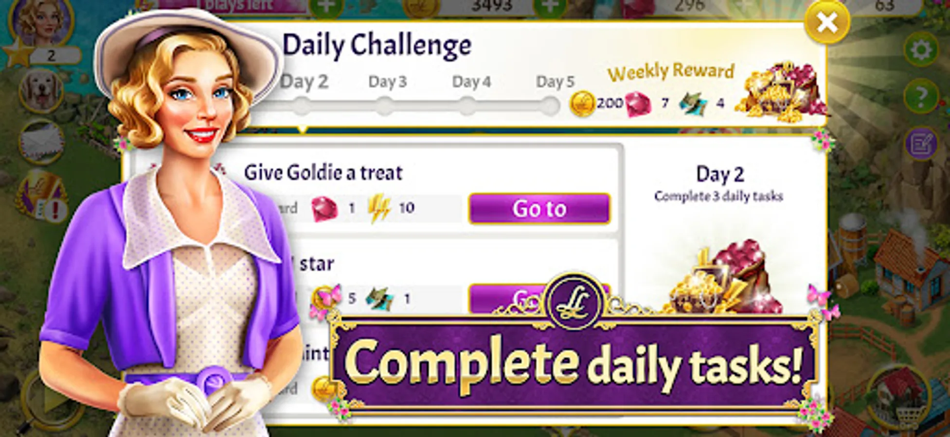 The goal of playing mystery hidden object games is to uncover the mystery, find hidden objects and complete hidden object scenes. Lynda's Legacy has all these features and more, making it one of the best hidden object games. These include hidden object scenes, mini games and puzzle games, a horse ranch, a map with upgrades, daily challenges and rewards and social elements. All of these help you progress in the mystery hidden object game, unlock new hidden object scenes and find hidden objects. Use Goldie's hint when finding hidden objects to find the most difficult hidden objects. Taking care of Goldie lets you to use her hint in the hidden object scenes. Find items for Goldie among the hidden objects and make her happy.
