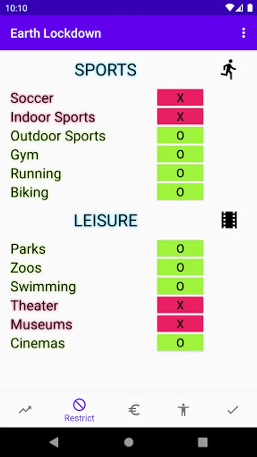 - Determine restrictions on sports, leisure, shopping, food, transportation, economy and education.