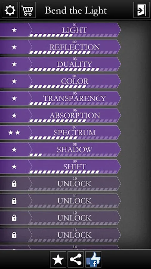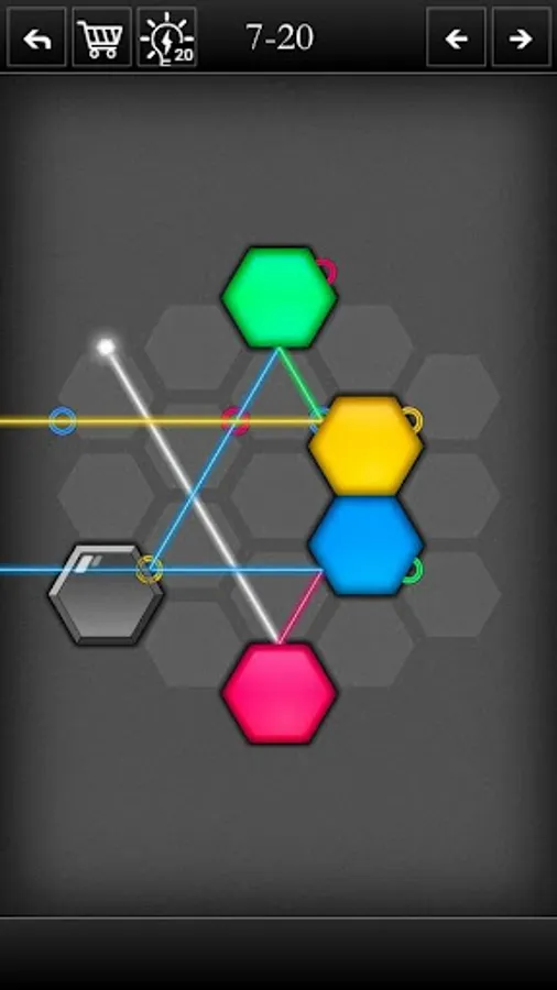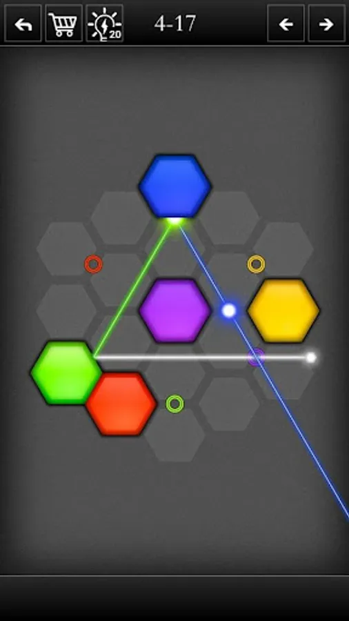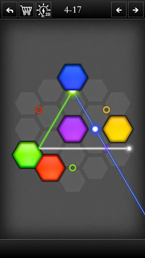 Bend the light, so that it passed through the colored targets. Move the blocks to reflect, repaint and bend the light beams. Put any block on the path of the beam, it will change the direction of the beam and build a new path. The puzzle is solved when the light reaches all the targets. Keep in mind that the color of the target should be equal to the color of the light ray. Move the colored blocks to switch the color of the ray. Use the super blocks: mirror, shift, black hole (gravity block) to bend the rays.