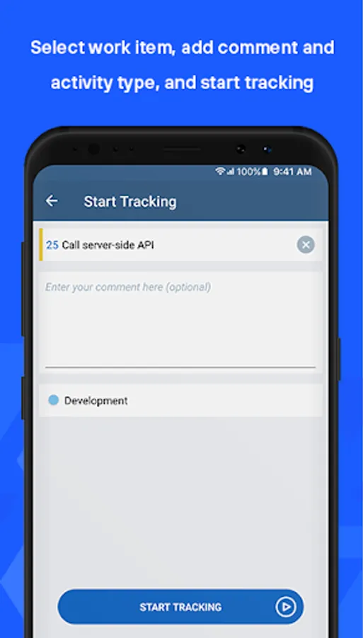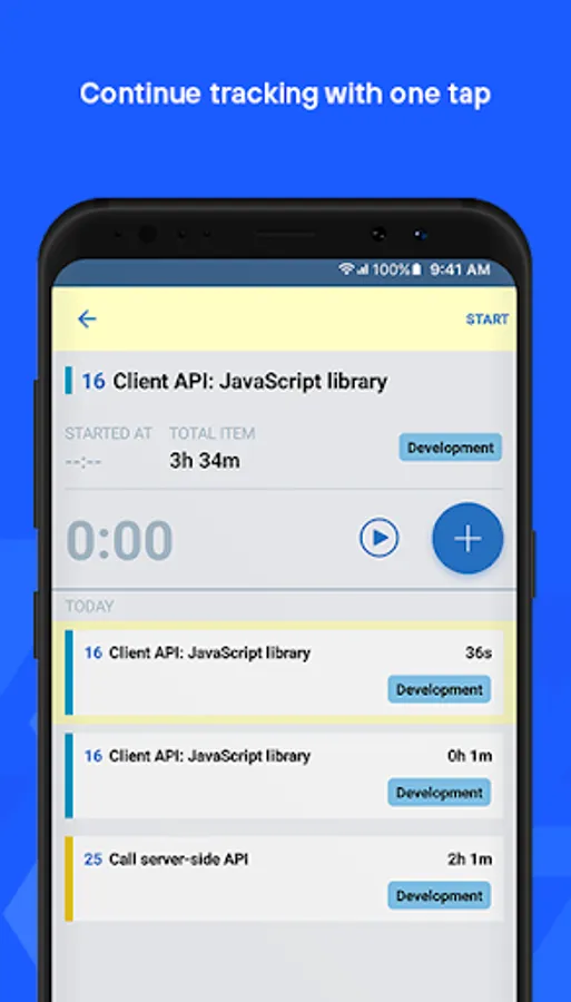 Just enter a 6-digit code for total control over all the core time-tracking functions you love, on-the-go. Start a new time track, see it ticking, restart an old one, adjust comments and activities.