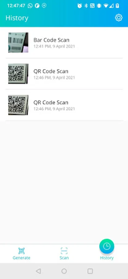 > Users are able to get the history of the scanned or generated QR code/Barcode.