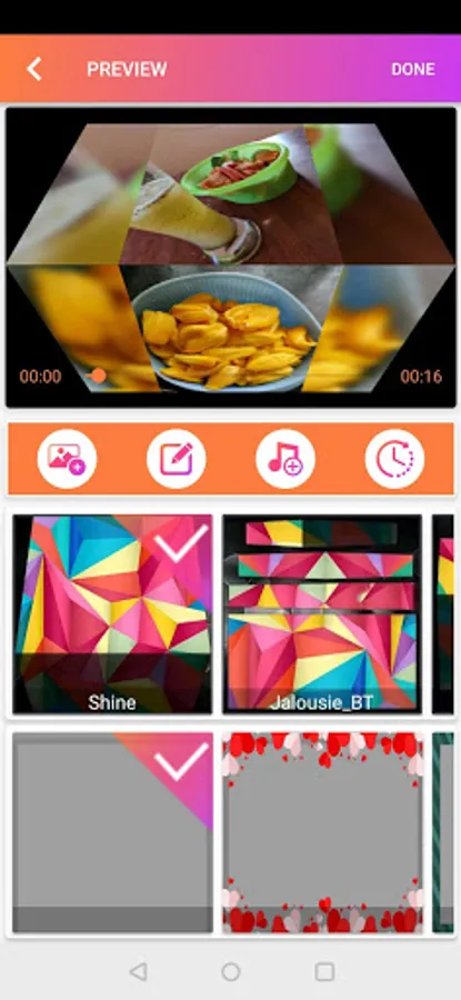 For creating videos or slideshow from this application you can just select photos form gallery or captured photos from camera, add music track and select stunning animations.