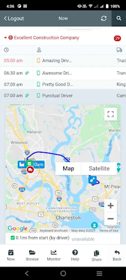 This app collects location data from drivers and crew member during active shifts even when the app is closed or not in use. The data is used to locate jobs, calculate movement, assist with routing, and measure productivity.