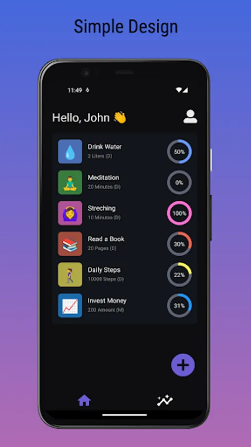 HabitUp is designed for simplicity. No complicated features, no overwhelming interfaces. Just a clean and intuitive design that makes tracking your habits a breeze.