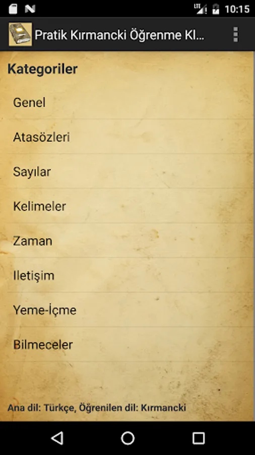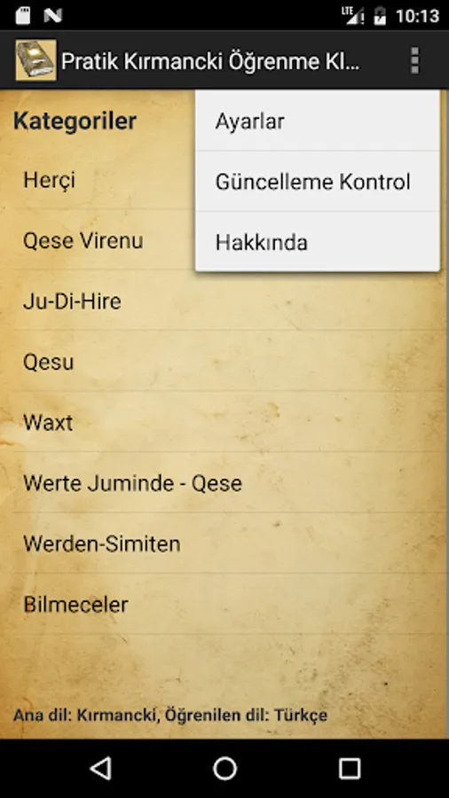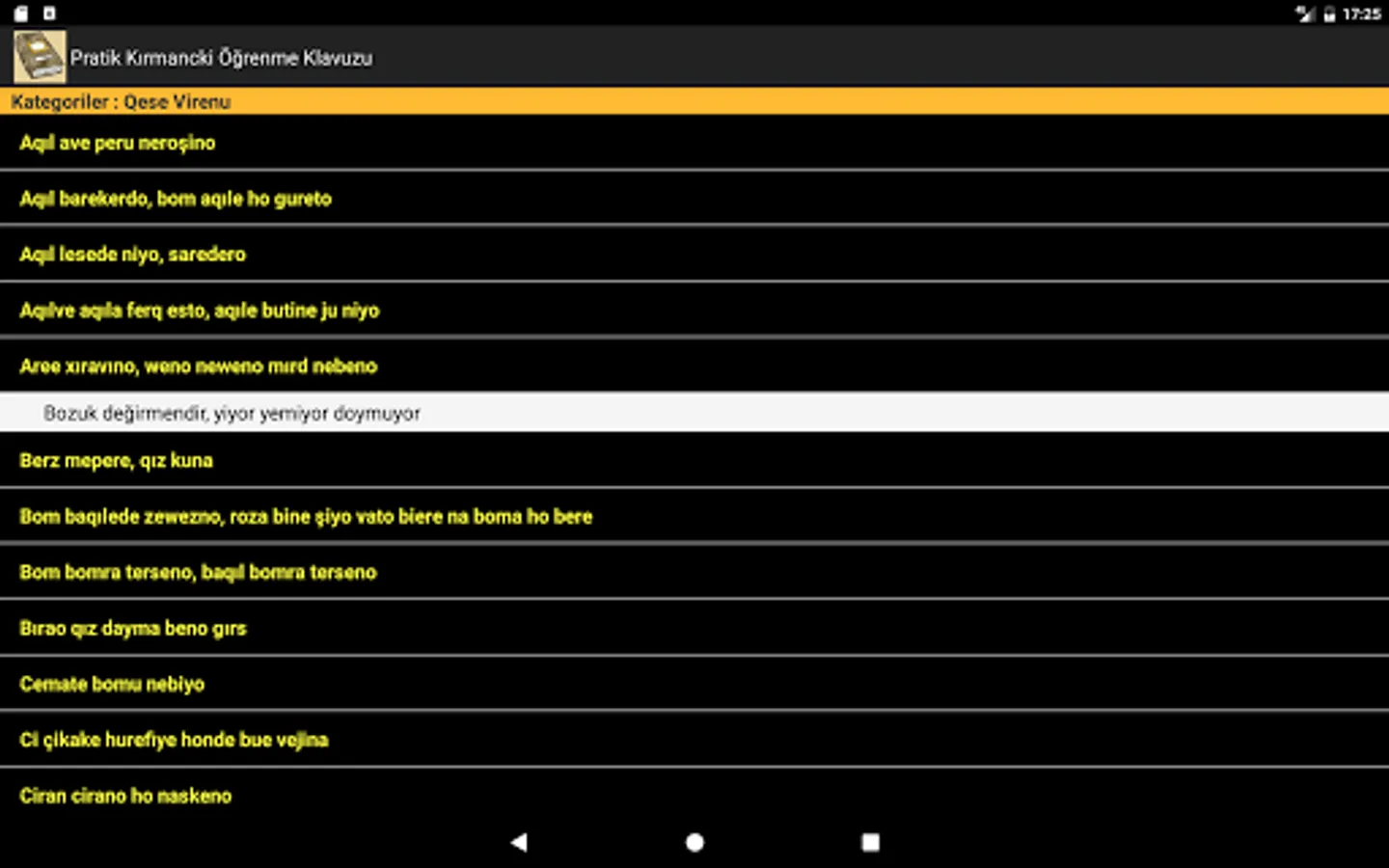This application Kırmanc that (Zaza, Dimili that Zone me, So-ba, also known as Dersim vs) is designed as a tool to help employees learn and practice to learn. This format is in the form of a dictionary with speech rather than manual. Content is grouped into different categories. Once a category is selected from the Home screen display the statement in the list of words and phrases assayed provision of memorabilia can be seen tapping on the money line.