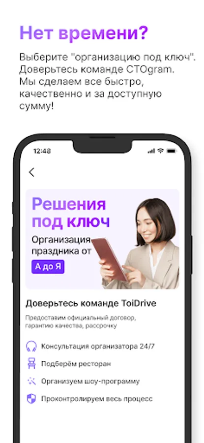 Free System for quick and easy retrieval of various services for the event. A distinctive feature of the application is that the customer service itself has a cost and has a direct access to the performer without any intermediaries in the face event managers and event agencies. That driver includes all kinds of search services and the rental of necessary equipment for the event.