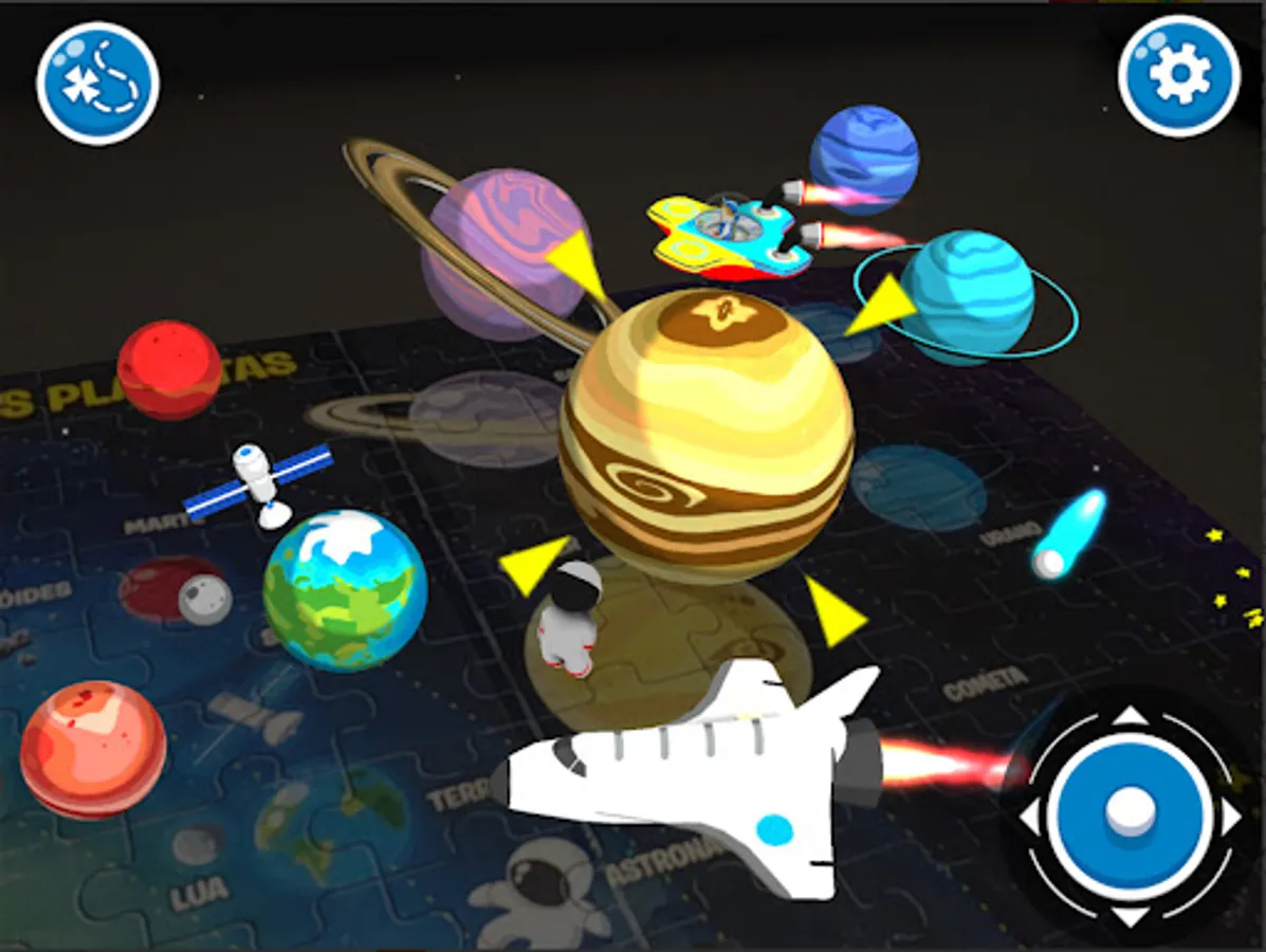 Want to know everything about the Moon, the Sun, the planets that make up the Solar System and much more? Then embark on this space journey with the Interactive Play Meet the Planets. Traveling through space with Xalingo is very simple: after assembling the puzzle, capture it through the Augmented Reality application to visualize the planets and other elements in 3D. Use the side stick to guide the spacecraft to each planet, satellite, asteroid, etc. and discover many curiosities about them.