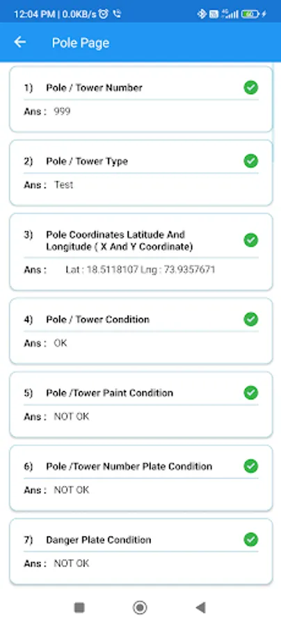 Suzlon BoP PM app inspection of pole and transmission line physical condition and rectification.