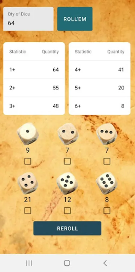 This application lets you roll as many dice as you want and automatically separate them between 1s, 2s, 3s, 4s, 5s, 6s.