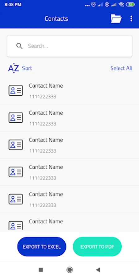 This application provides you the ability to export smart phone contacts to Excel or PDF.
