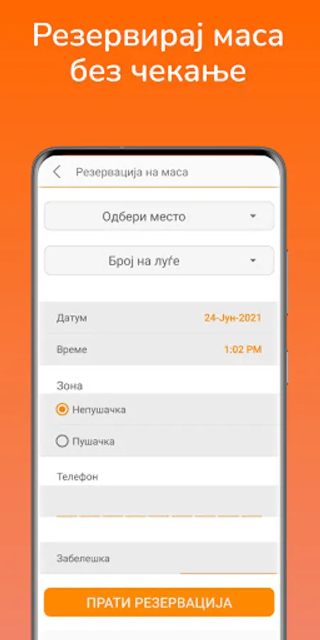 Апликација со која може да креирате нарачка од дома, за достава или во ресторанот кој го посетувате.