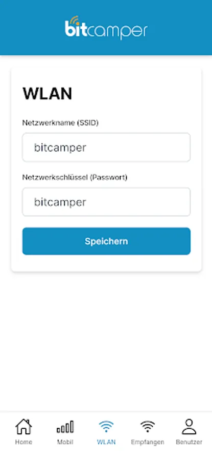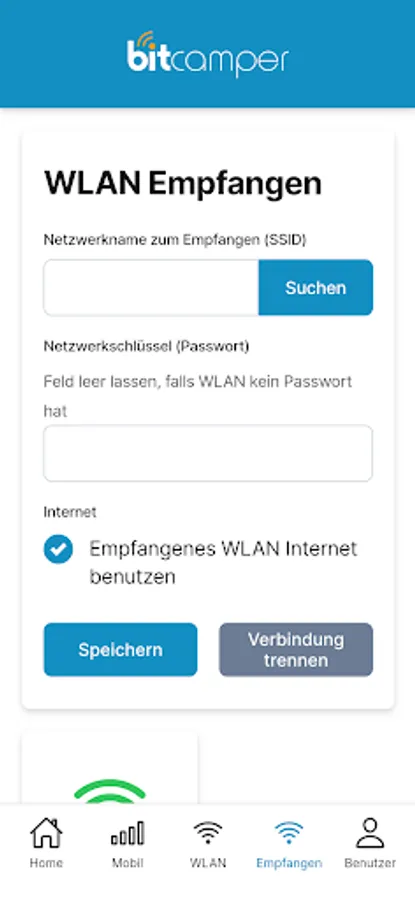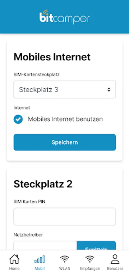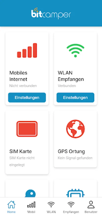 Configure your bitcamper router with this app! With a simple menu navigation, you can easily set up your existing SIM card for mobile Internet or receive an existing WLAN signal.