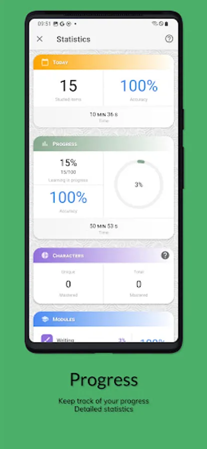 • Follow your progress thanks to the smart lists. Review difficult elements or check your last errors.