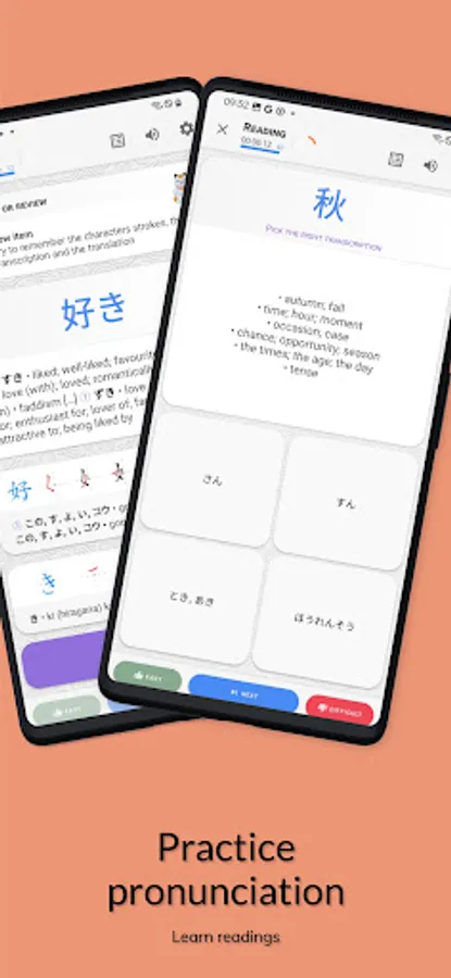• Study the lists already available or create your own lists of kanjis and words. Just enter you words in Japanese and the app will translate them. You can even download commonly used Japanese textbooks words lists.