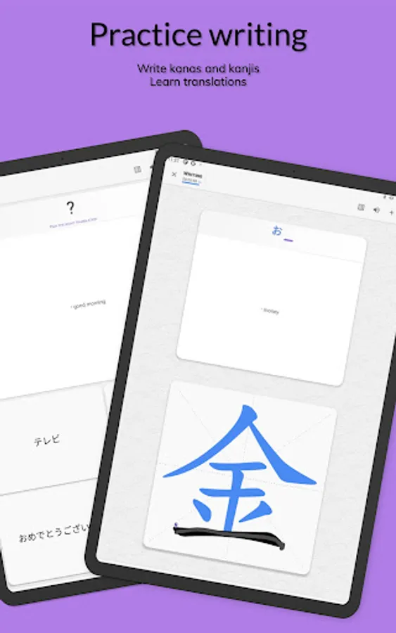 • Practice and learn to translate your kanjis and words from Japanese into English or from English into Japanese.