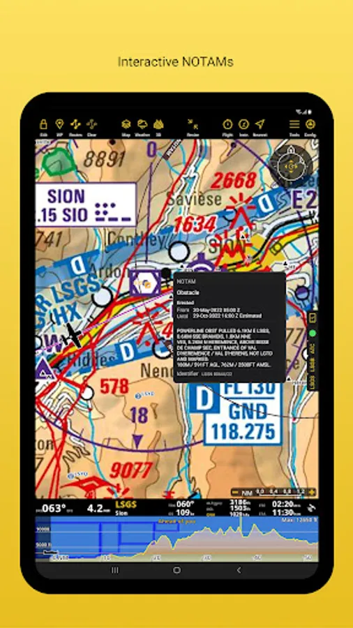 The Logbook uses GPS information, and is automatic and fully editable. It can be shared via email or via the integrated webserver. Create different files, like the Operational Flight Plan or the NOTAMs Briefing, that will help you document your flight and follow your plan as you communicate with Air Traffic Services. Interactive NOTAM, which will automatically appear on the moving map, are now included in our packages.