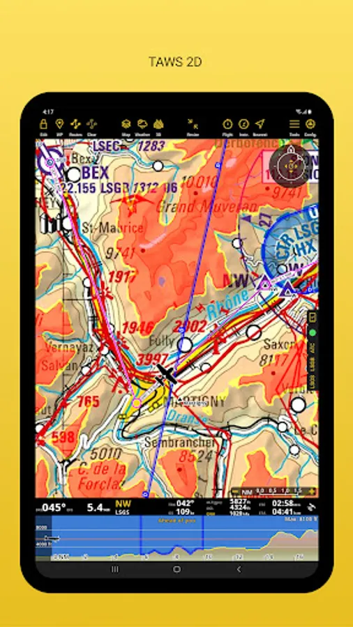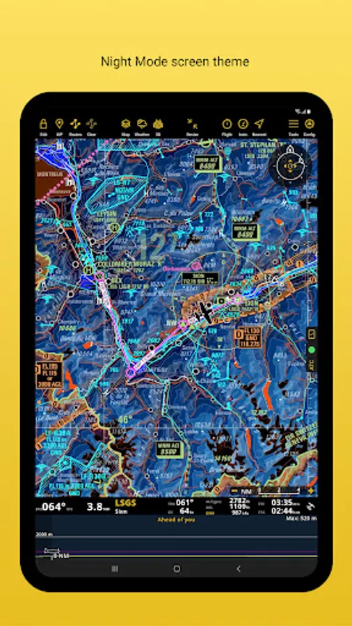 Global aeronautical database with over 215,000 waypoints and 55,000 airspaces constantly being updated. Search and navigate to specific locations. Also create, edit and export custom waypoints and routes and create aircraft profiles for both helicopters and airplanes.