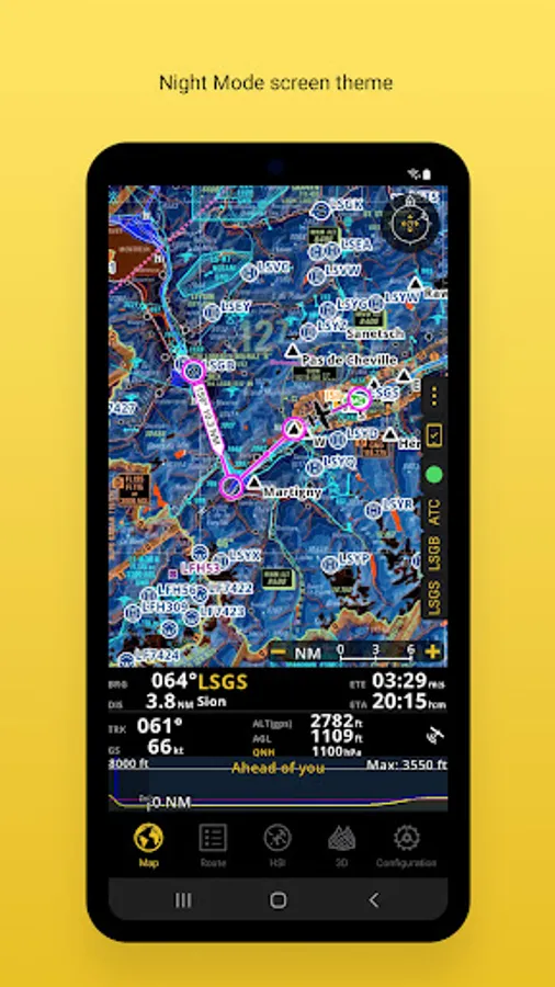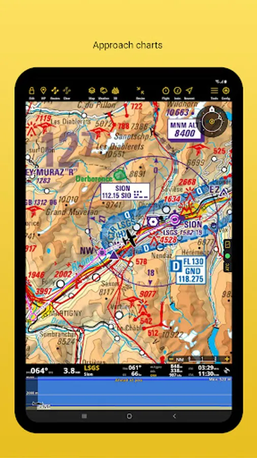 The georeferenced approach charts are designed for maximum visibility. Displaying now also in the 3D view, they provide increase awareness of your surroundings during take-off and landing.