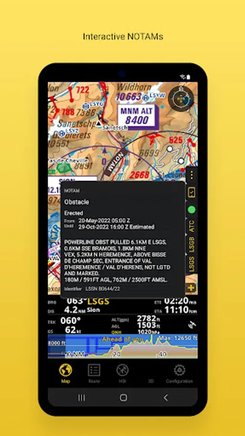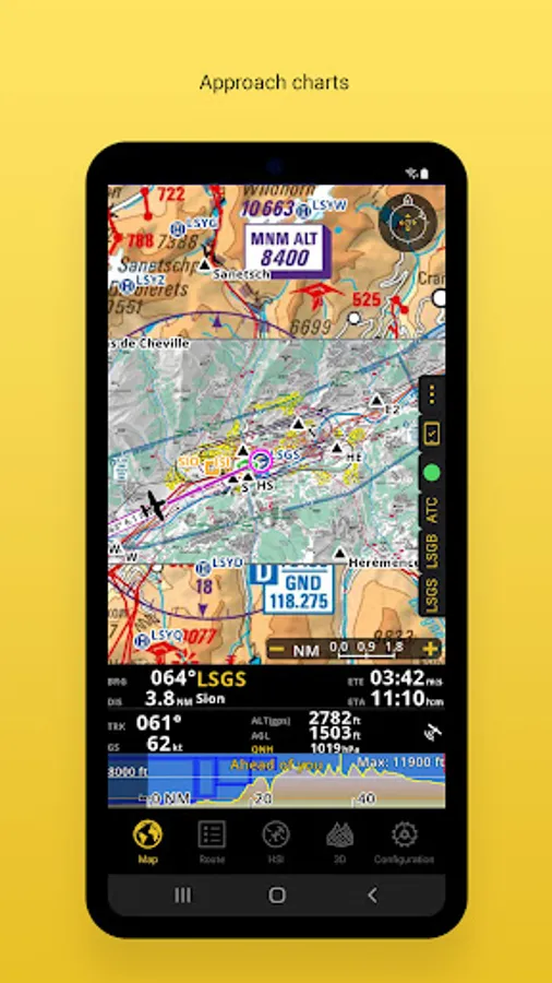 We provide a worldwide selection of charts including the main ICAO charts. The Profile View gives all terrain information for better situation awareness and safety enhancement. The 3D view provides enhanced terrain awareness and is compatible with georeferenced approach charts.
