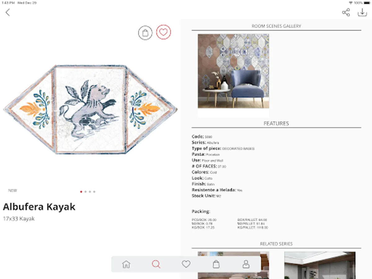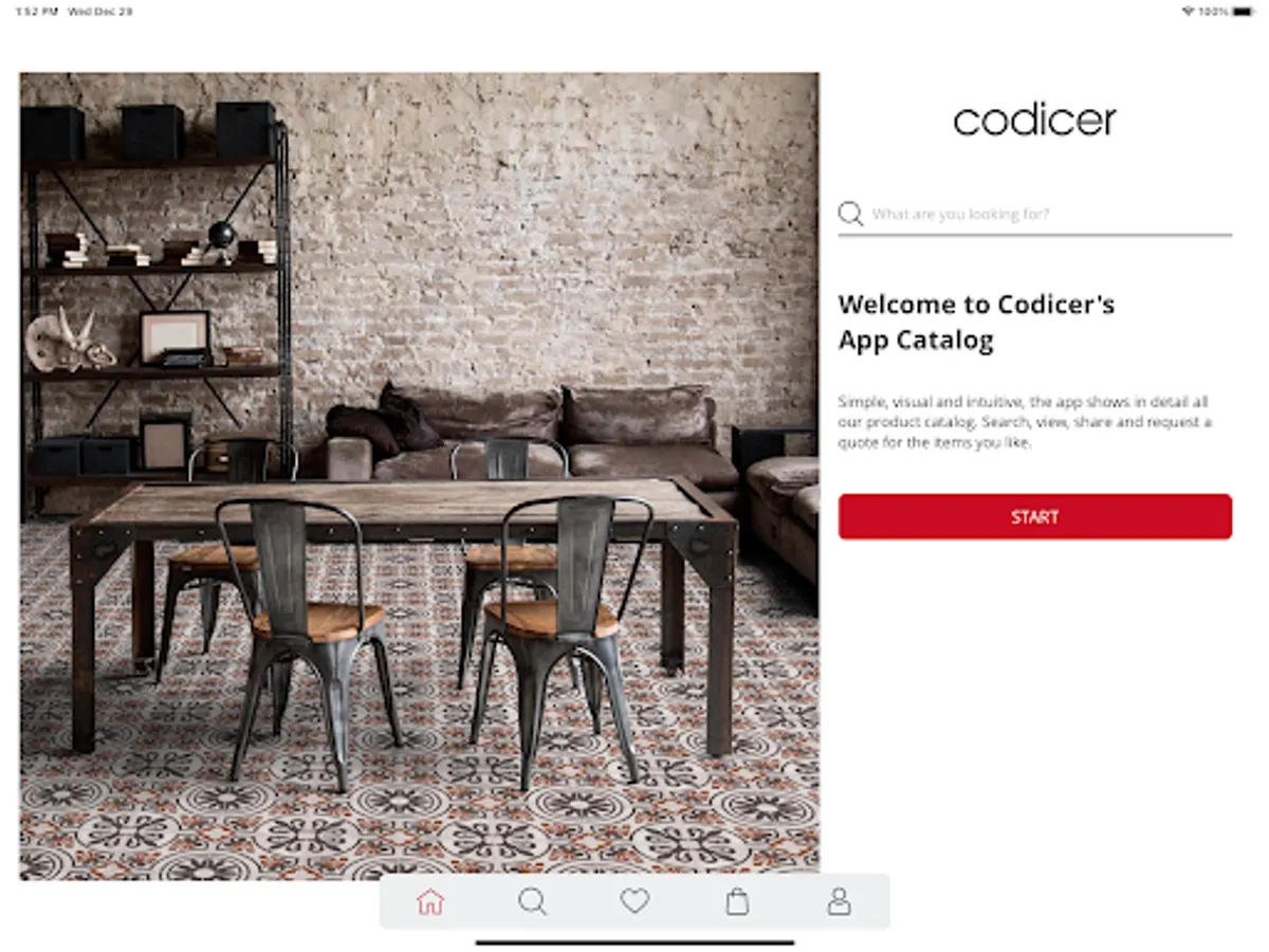 Codicer 95 offers you a personalized experience to discover and demand products from its ceramic catalog. Register in the app and you will be able to receive personalized information according to your interests, add products in favorites lists, request personalized budgets and follow up on the status of your orders.