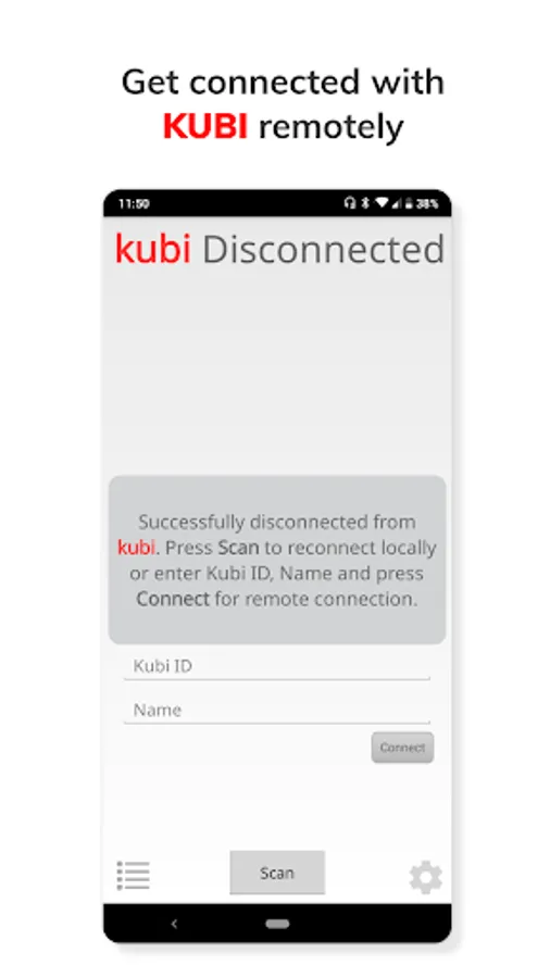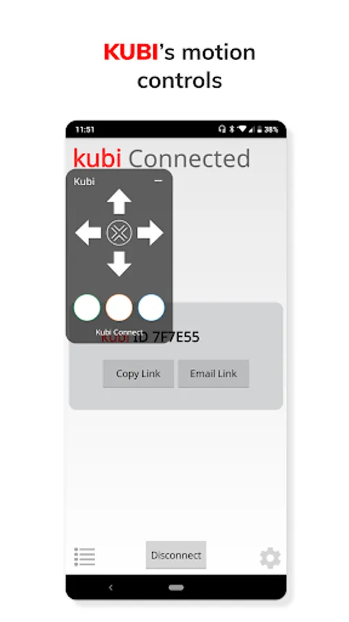 Kubi Connect connects a Kubi robot to your Android tablet/phone and enables remote control of the Kubi robot from a remote computer, laptop or mobile device during a video conference.