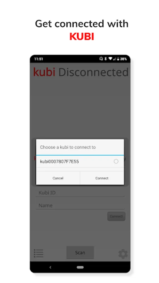 The Kubi Connect app for Android enables a Kubi robot to connect automatically to the Android tablet or phone mounted on the Kubi robot via Bluetooth and makes the Kubi available for remote control via the tablet’s WiFi or Cellular Data connection to the internet.