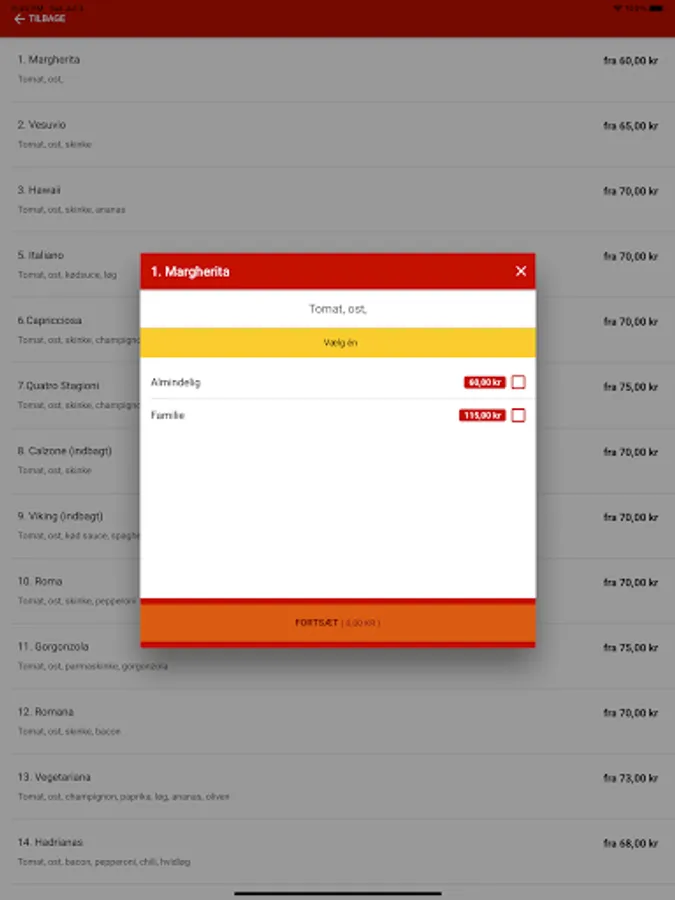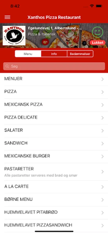 Bestil pizza, burger, pasta, m.m. med få tryk, nemt og hurtigt!