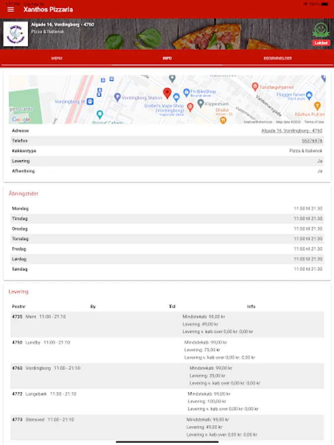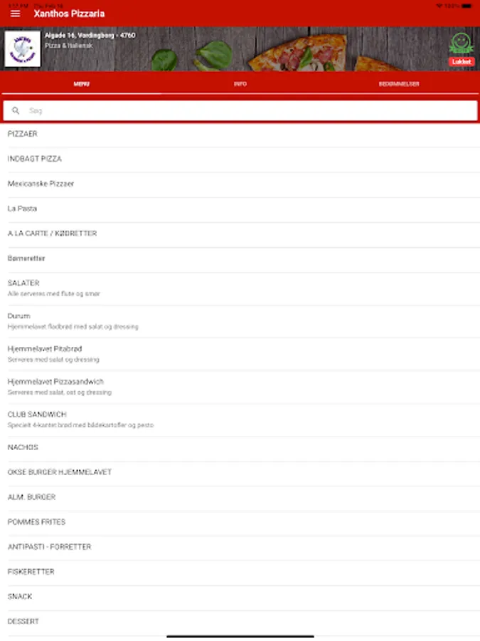 Bestil pizza, burger, pasta, m.m. med få tryk, nemt og hurtigt!