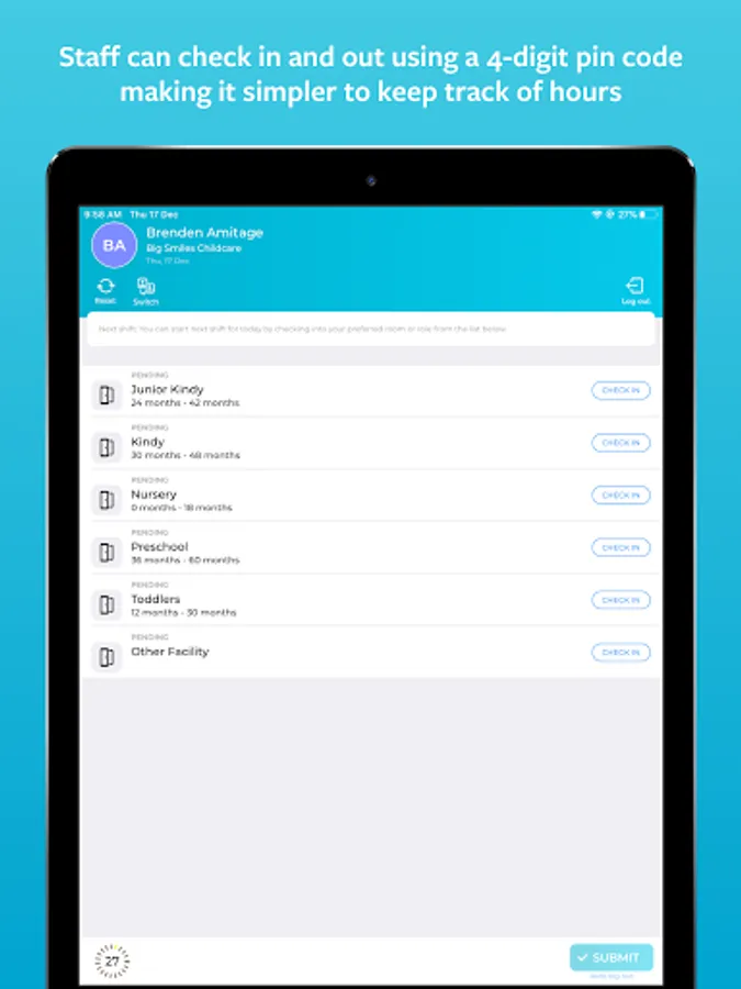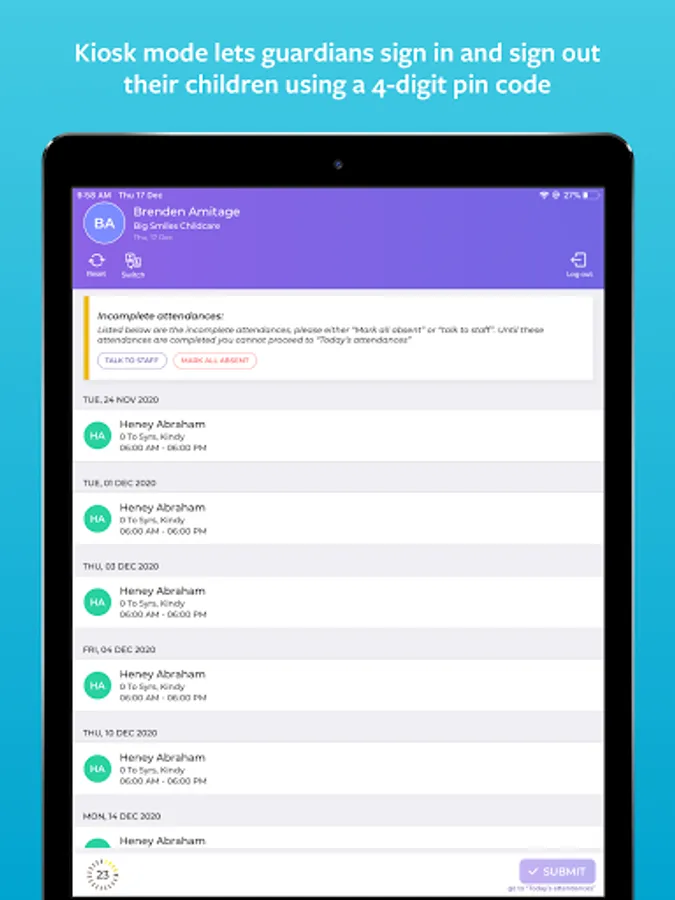 The Storypark Manage Kiosk allows for quick, digital sign-in and sign-out for both children and staff.