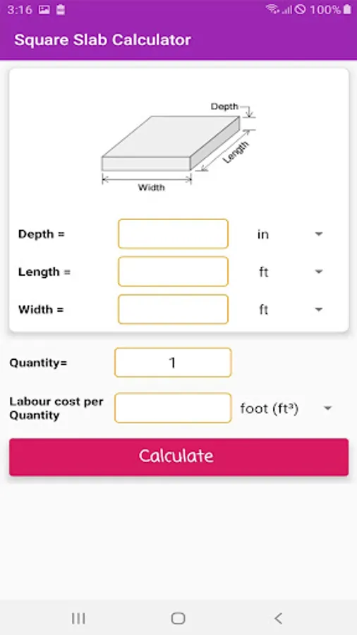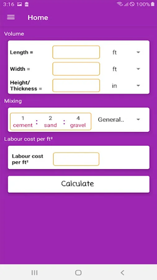 this application is a quick and easy way to calculate the volume, weight, and number of bags of concrete you need per project.